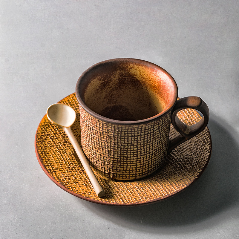 F: yellow linen coffee cup + black tangled nanmu coffee spoon + gift box
