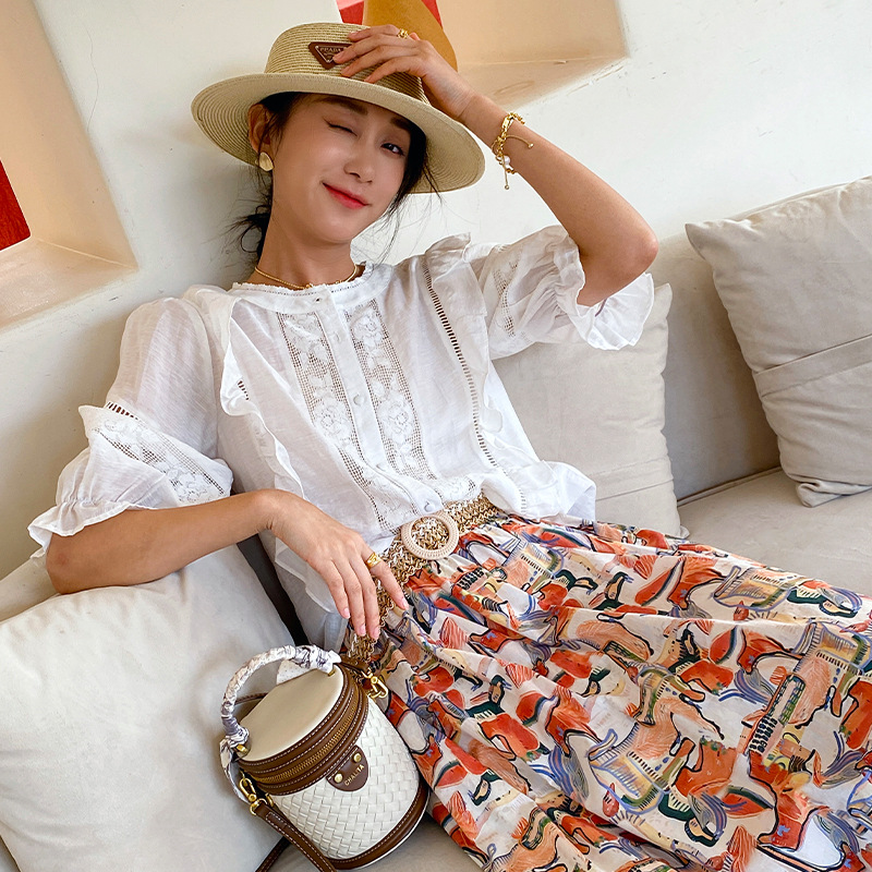 Color: Camellia shirt, Roman orange skirt (without belt)