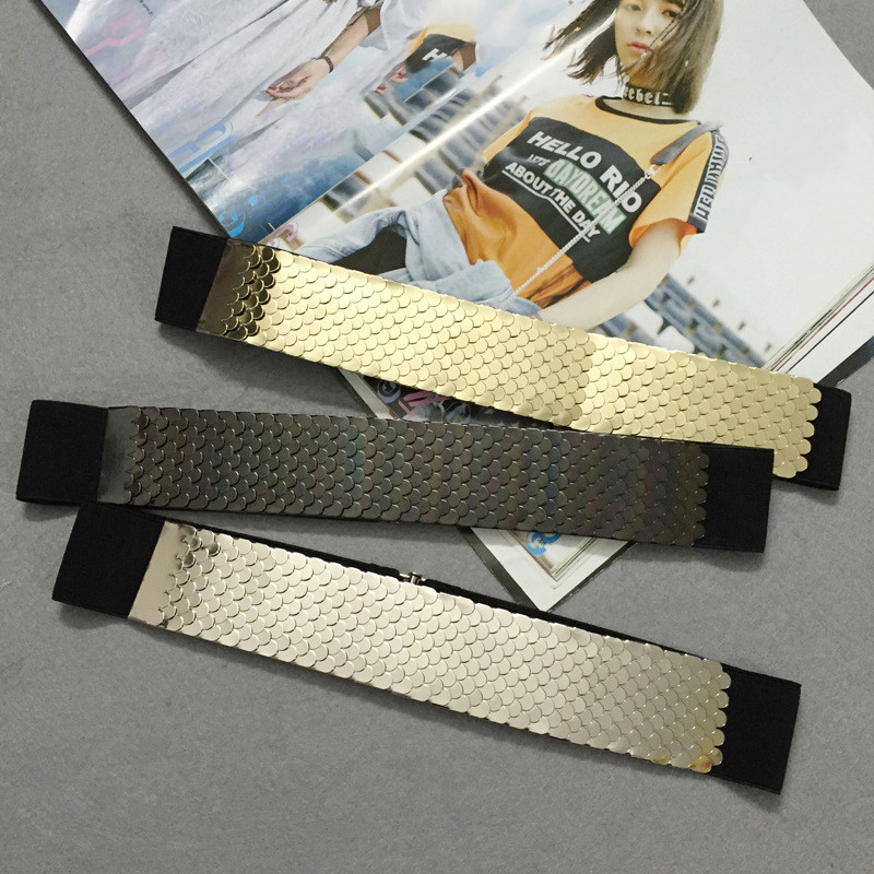 Product Information:Product Category: WaistbandApplicable gender: femaleColor: gold, silver, blackWidth: Thick (>4cm)Size: 68cm in total length and 4.5cm in width Material: metal