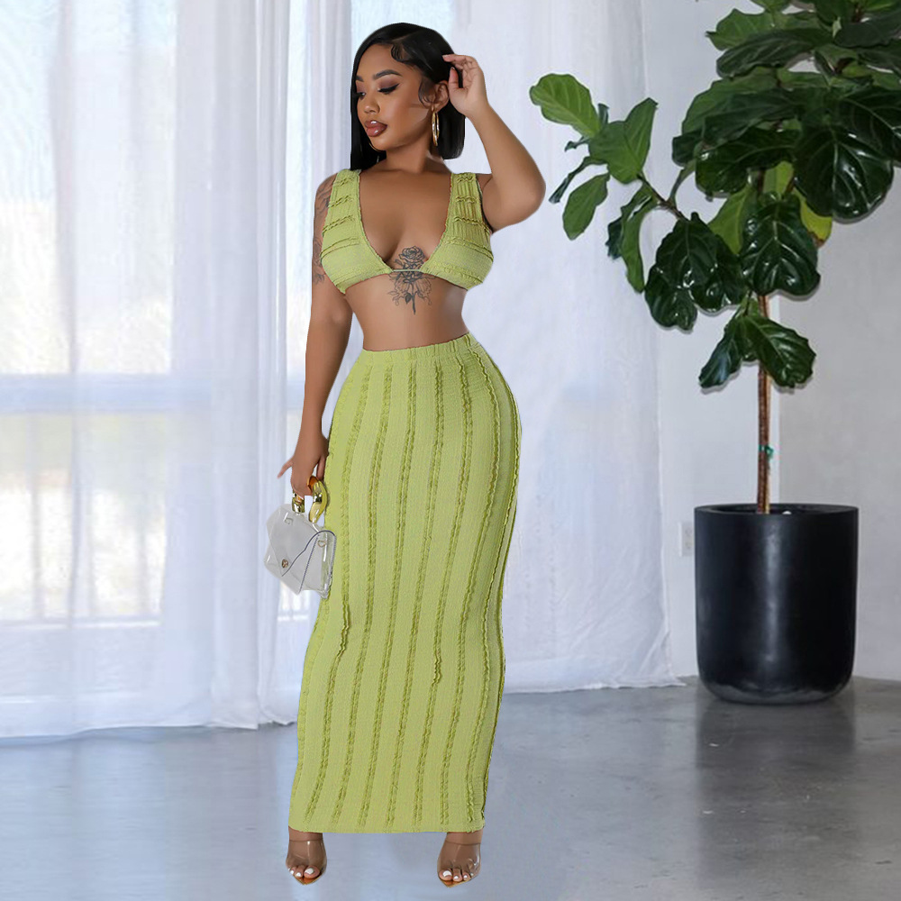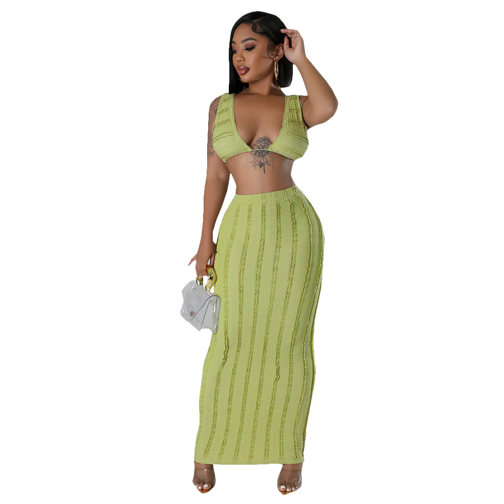 Wrapped Chest Lace-up Sexy Midriff-baring Top Long Dress Suit