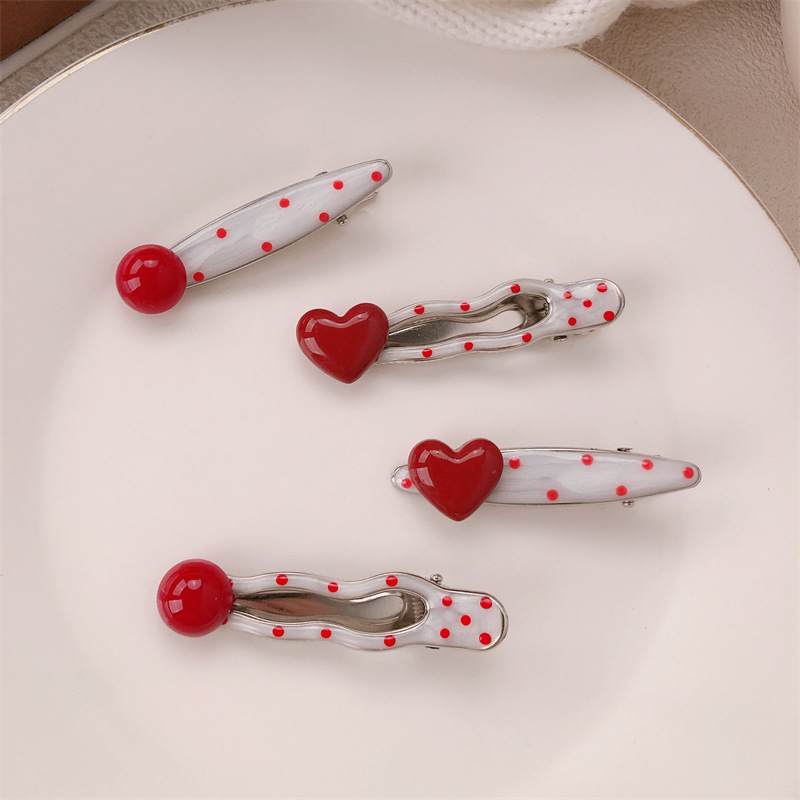 Product information:Processing Technology: manual Applicable population: Female Style: barrettes Material: mixed material Popular elements: Love/heart Style: Korean style