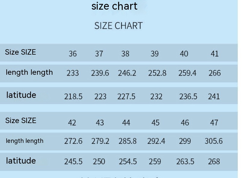 Size: 36, 37, 38, 39, 40, 41, 42, 43, 44, 45