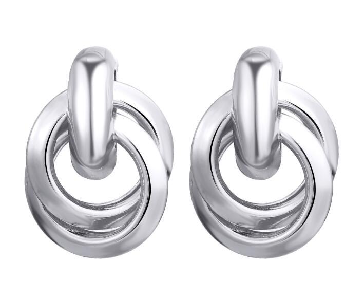 Alloy double round two-ring interlocking earrings