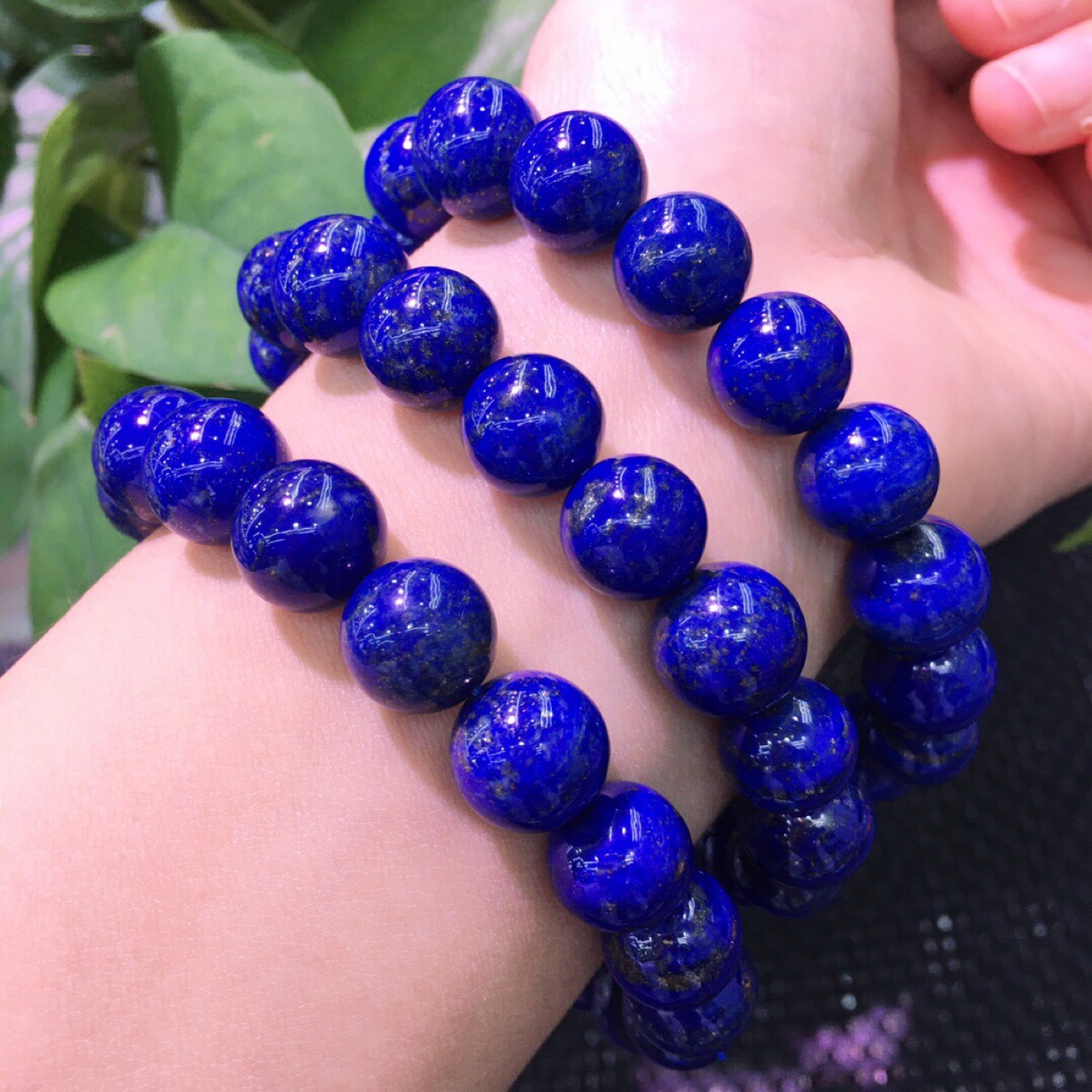 Natural old mineral Lapis round bead bracelet
