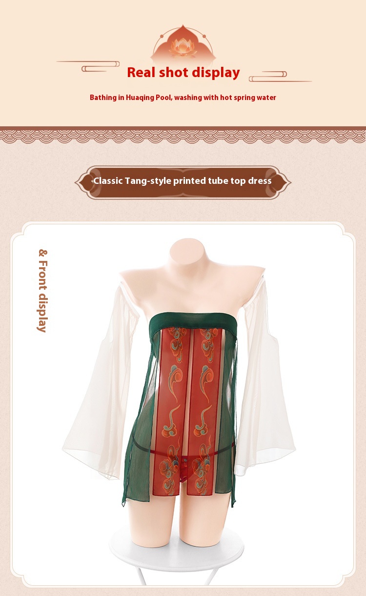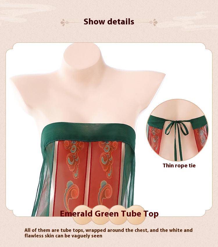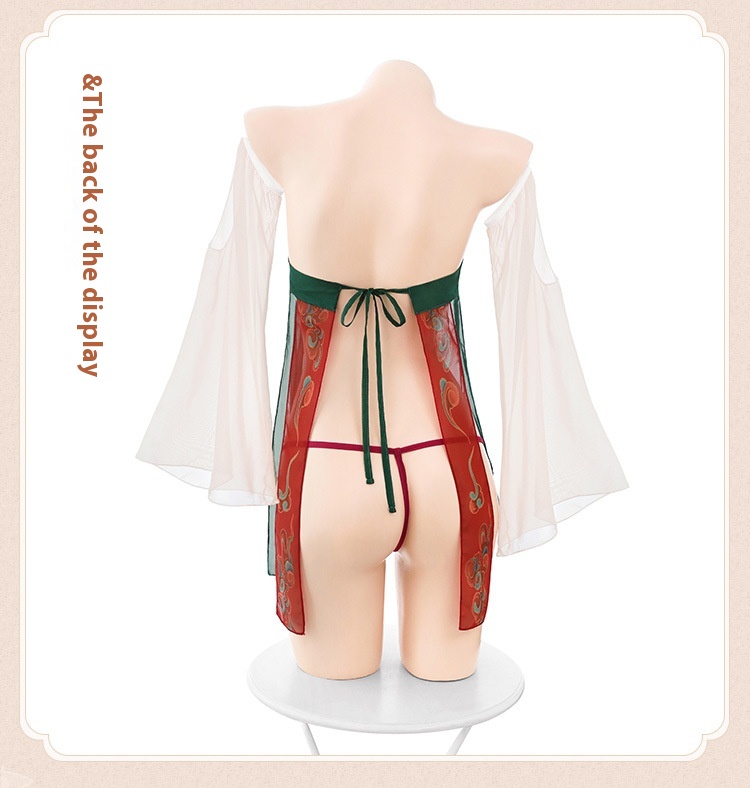 Color: green red [split strapless dress floating sleeves * 2 T-shaped panties], Green Red [split strapless dress floating sleeves * 2 T-shaped panties] gold face curtain