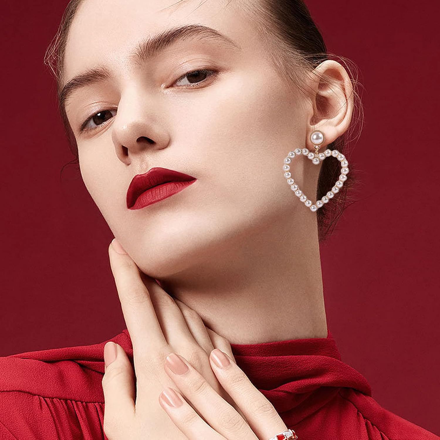 Product information:Treatment Process: inlay Color: Pearl A- shaped heart, Pearl B- shaped heart, Pearl Love C, Pearl Love DMaterial: Imitation Pearl Shape: heart shape