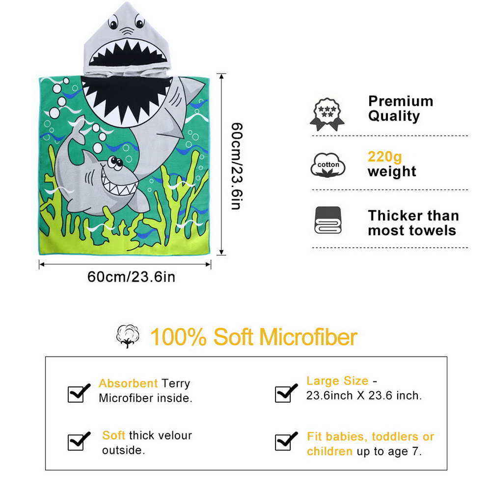 Product features: Children's hooded bathing cape cloak, unfolded into a rectangular bath towel, folded into a bathrobe, hat wide mouth, hem of the hem, cartoon printing, annual sales of hundreds of thousands of pieces, quite popular with children