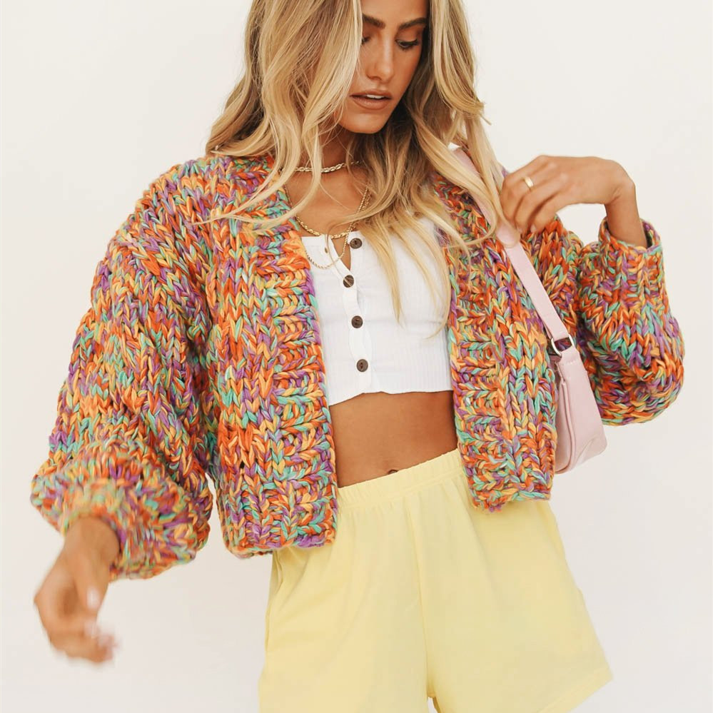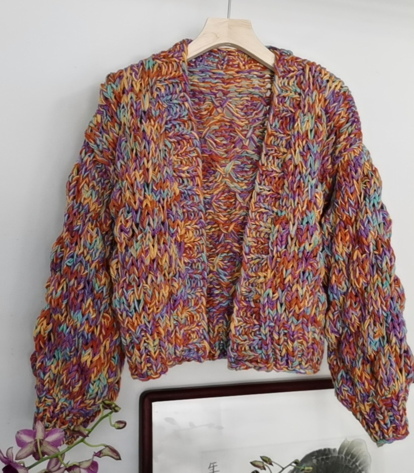 Product information: Color: Rainbow Size: free size Style type: Street hipster Popular elements: Three-dimensional decoration Style: Cardigan Fabric name: Wool Main fabric composition: camel wool Style: European and American style