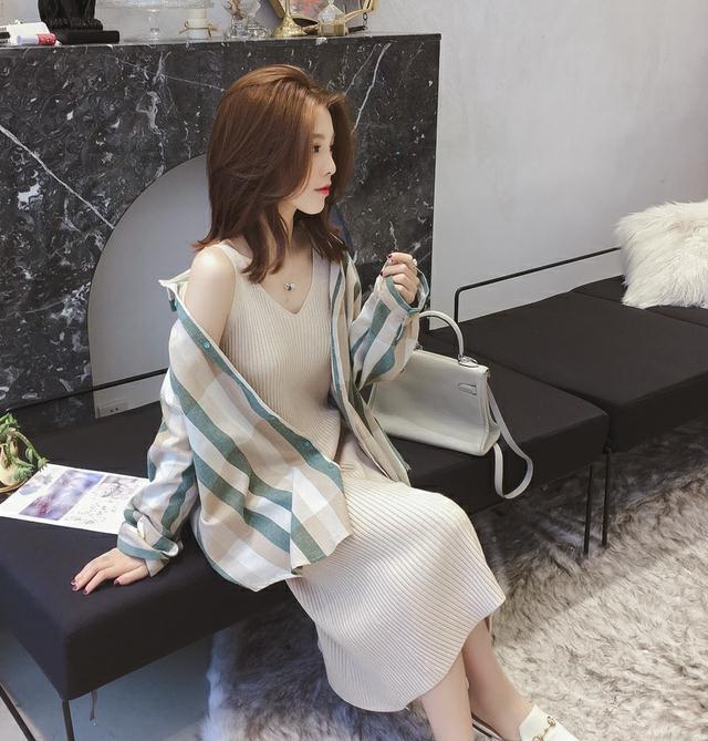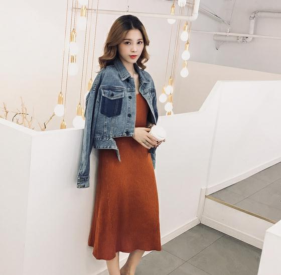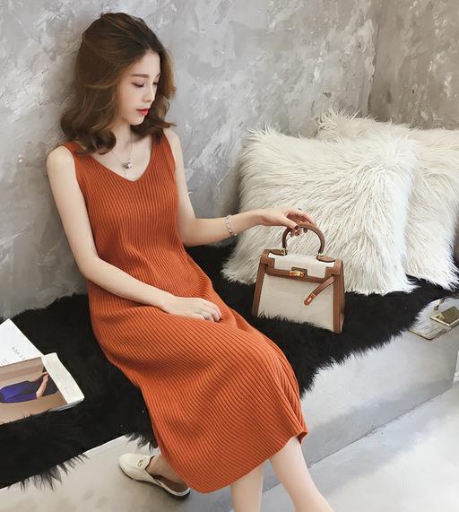 V-neck knit sling black tank top dress