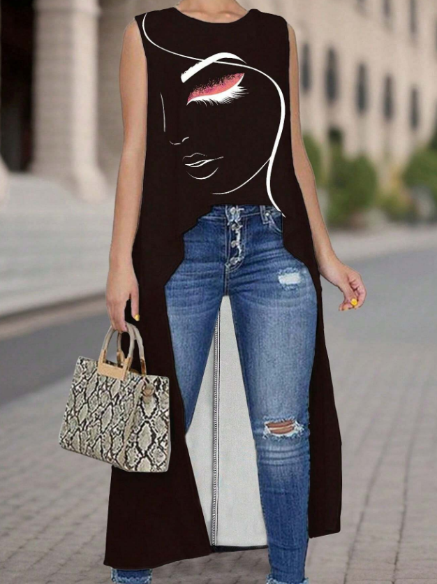 Color: Black, white, redStyle: CasualNeck: Round neckSleeve length: sleevelessMaterial: Polyester