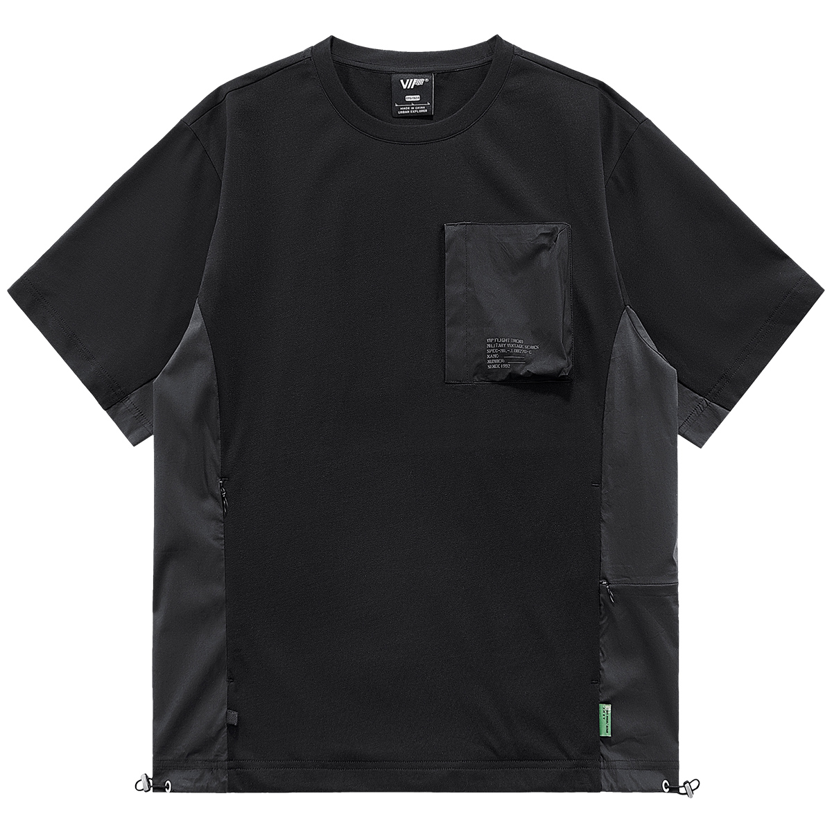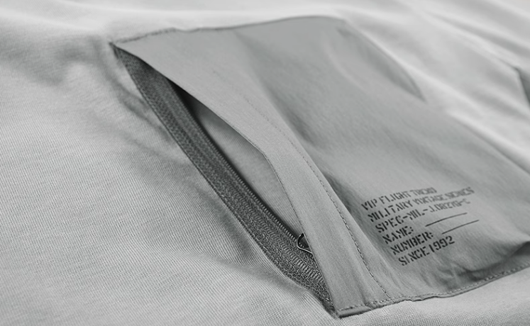Features: Round neck, contrasting colors, multiple pockets