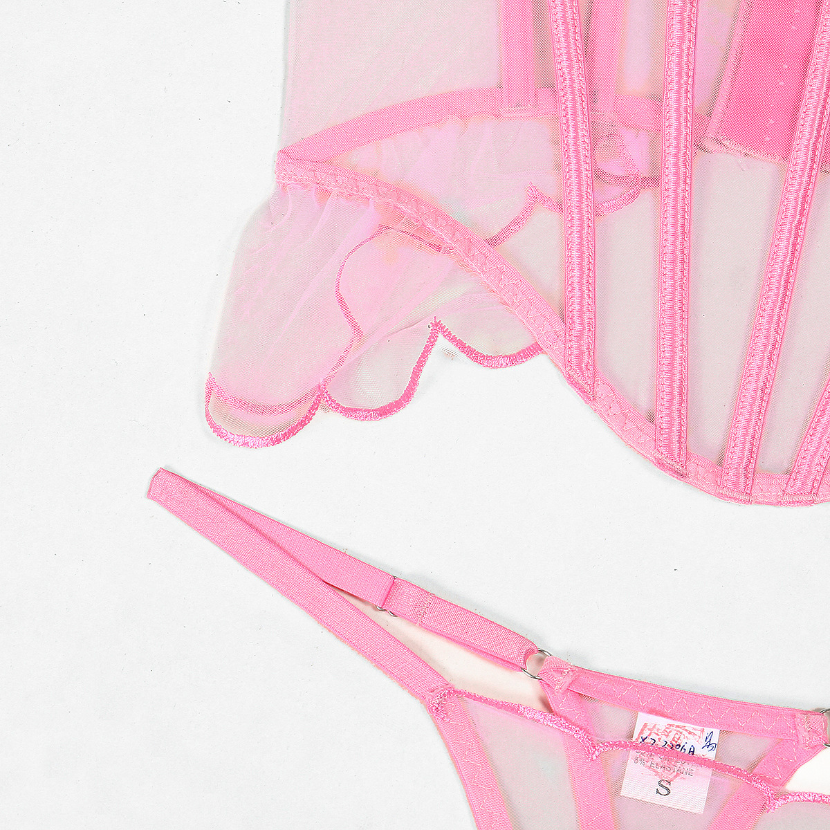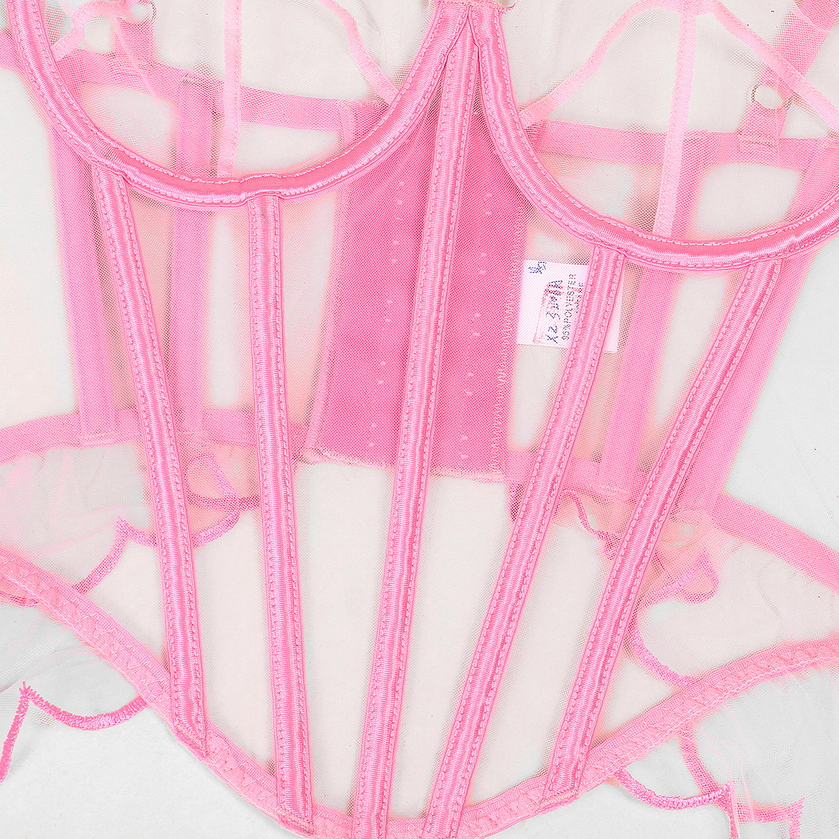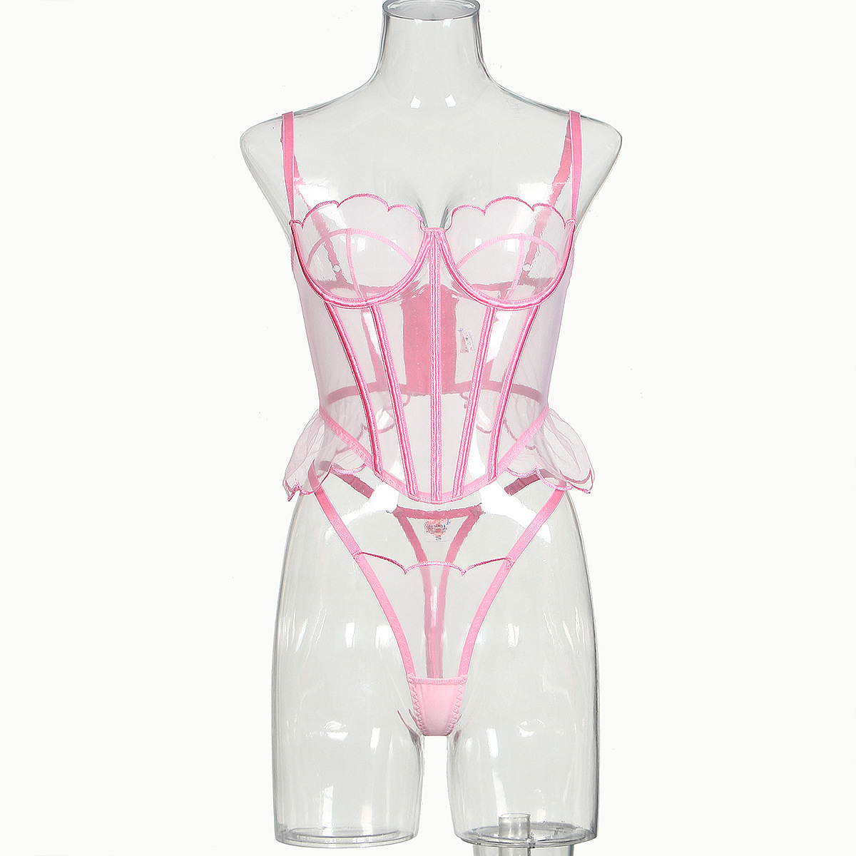 Shaping Sling Wave Mesh Edge Joint Fishbone See-through Sexy Underwear Two-piece