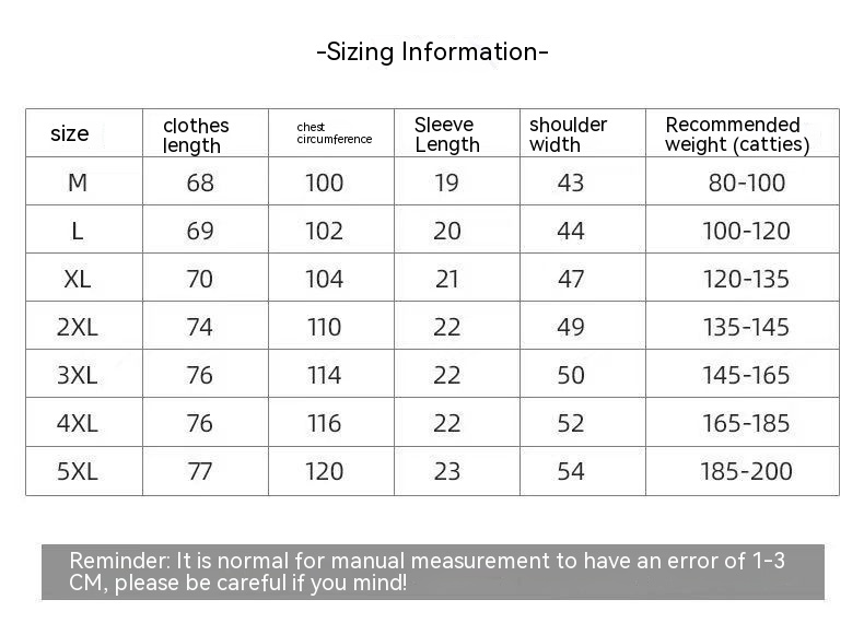 Size: XXS,M recommended 40.00kg-47.50kg,L recommended 47.50kg-55.00kg,XL recommended 55.00kg-65.00kg,XXL recommended 65.00kg-72.50kg,XXL recommend 72.50kg-80.00kg,XXXXL recommend 80.00kg-87.50kg,5XL recommend 87.50kg-95.00kg,6XL recommend 95.00kg-105.00kg