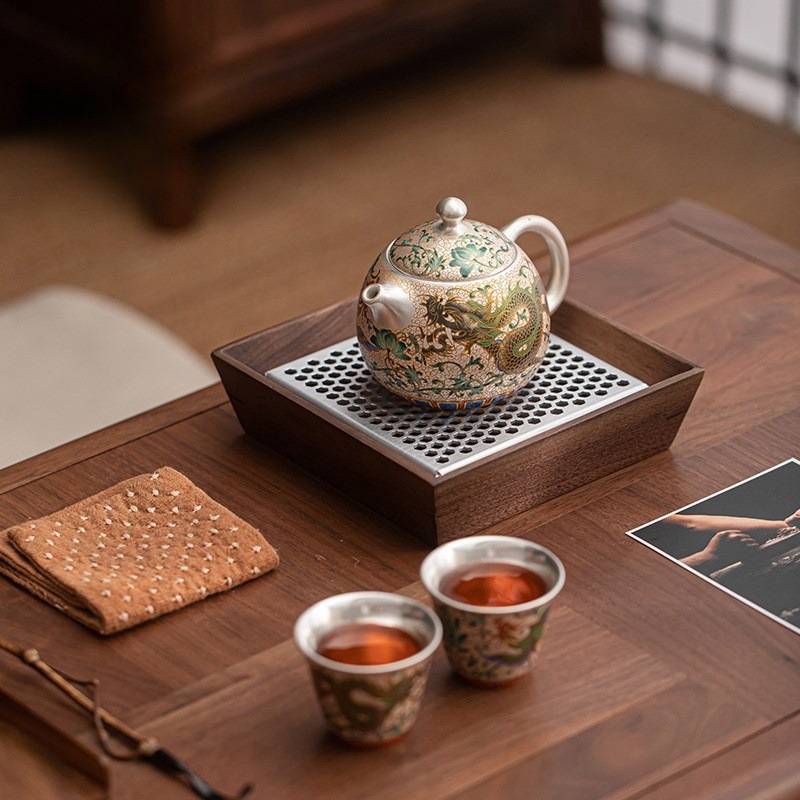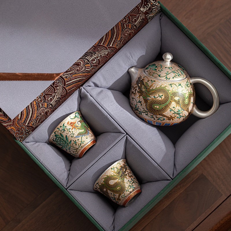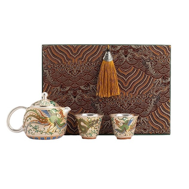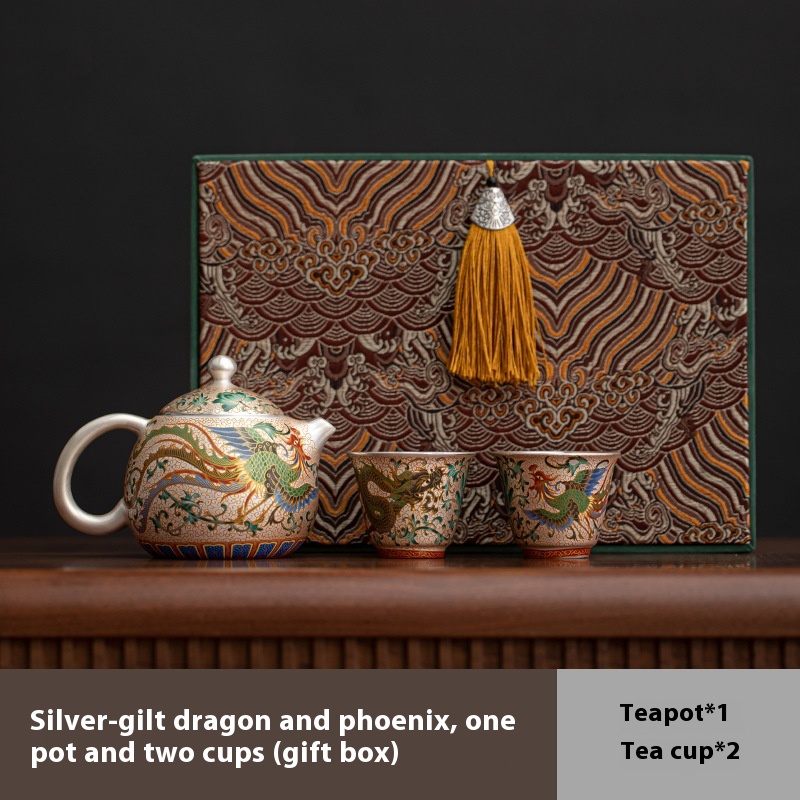 Product information:Color: silver gilded · dragon and phoenix one pot two cups (gift box) Specification: 2 people, 1 personStyle type: mild luxury retroMaterial: porcelainStyle: light luxury