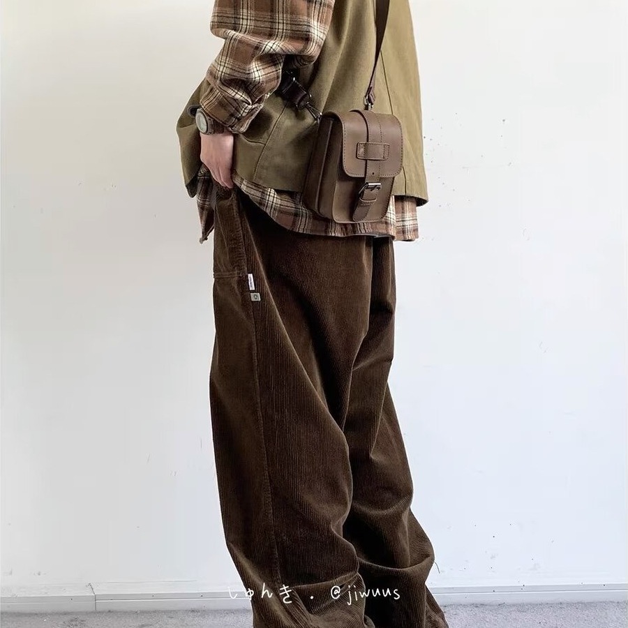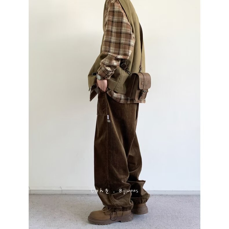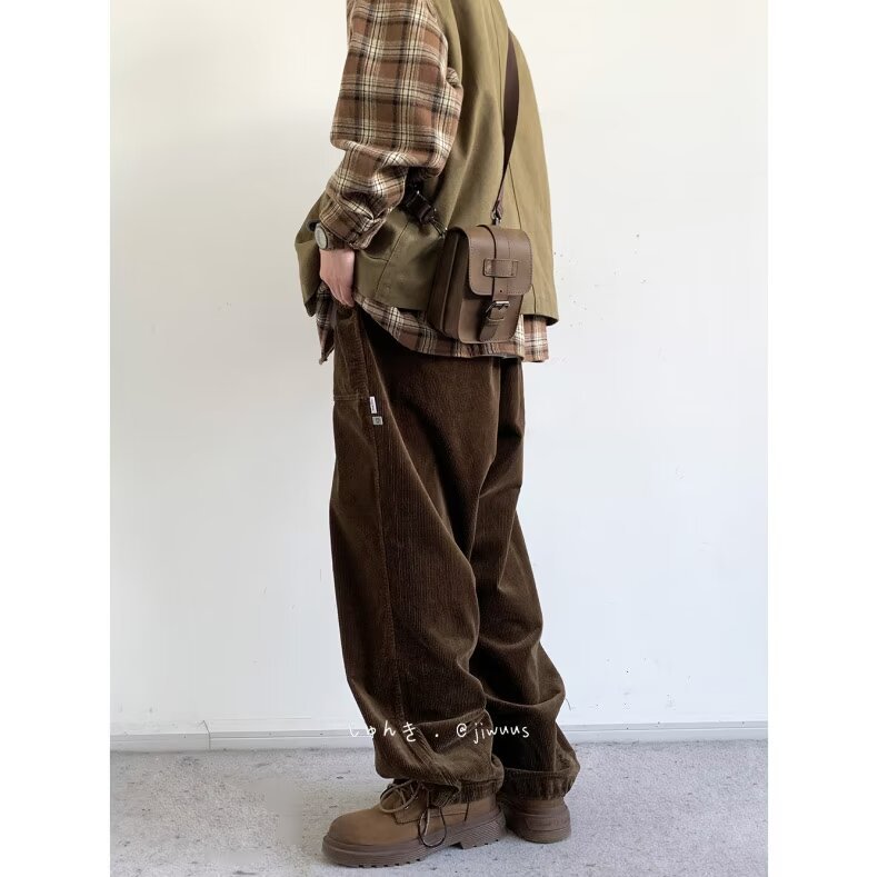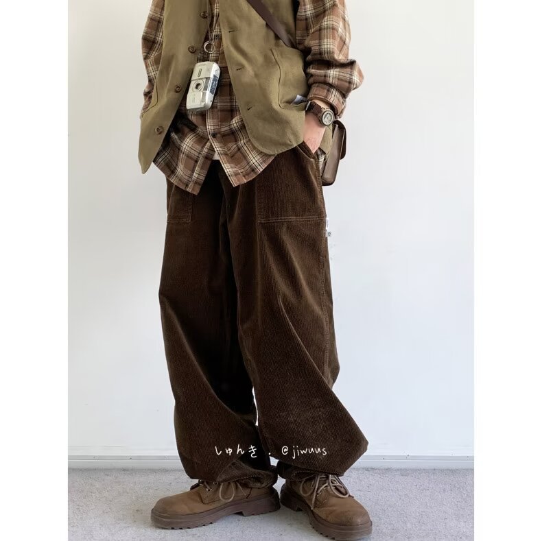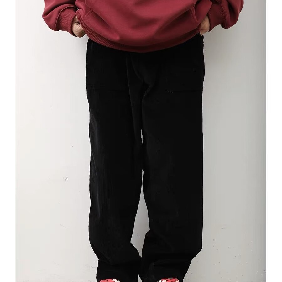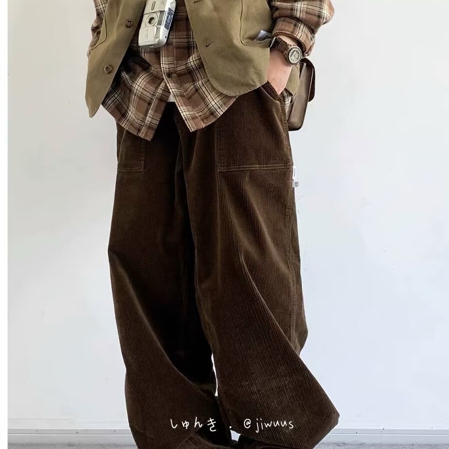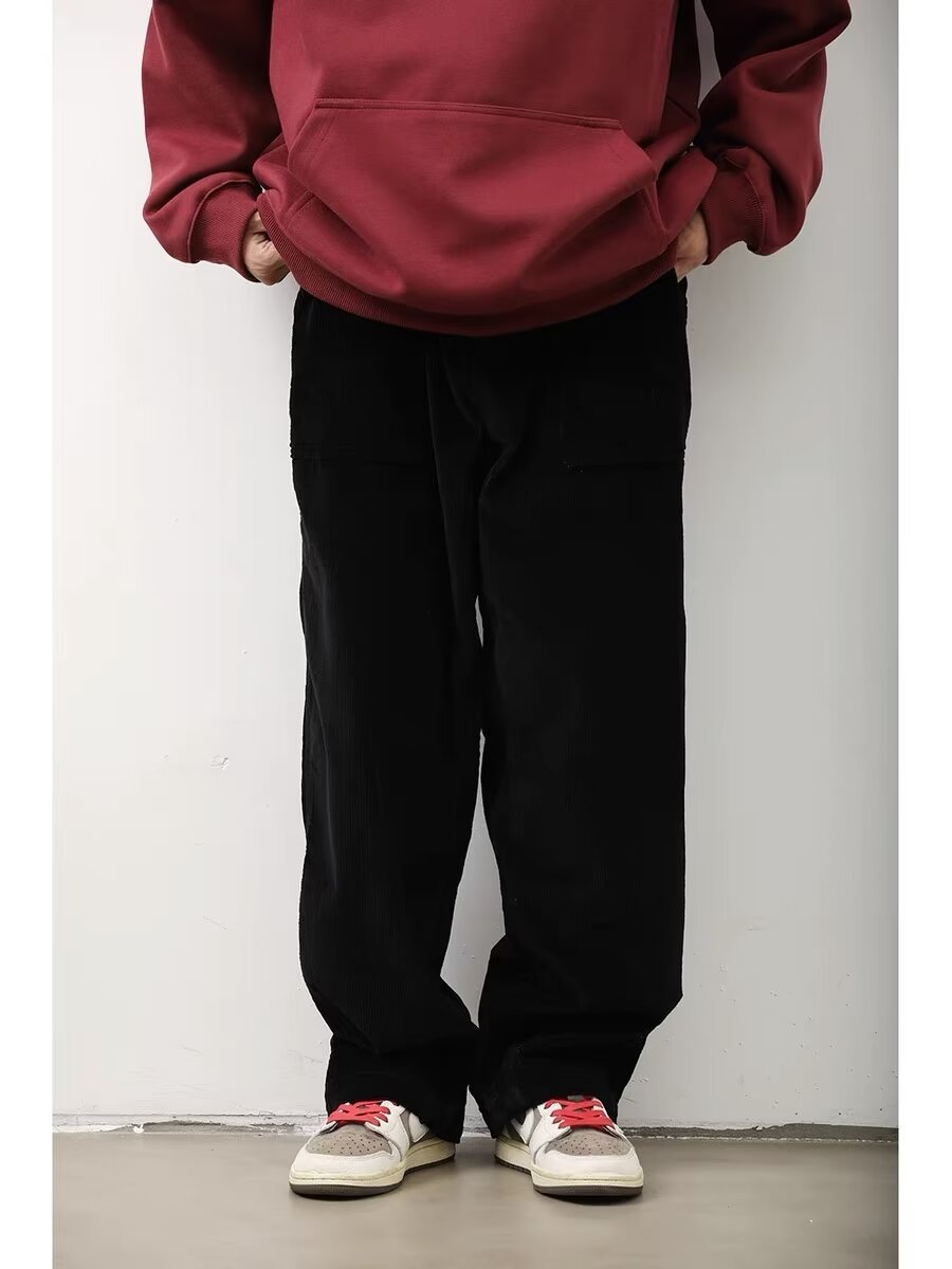 Product information: Color: black, dark brown Size: M,L,XL,XXL,XXXL Style: long straight-leg pants Fabric name: corduroy Main fabric composition: Polyester Fiber Style: Korean style Leg opening style: Straight