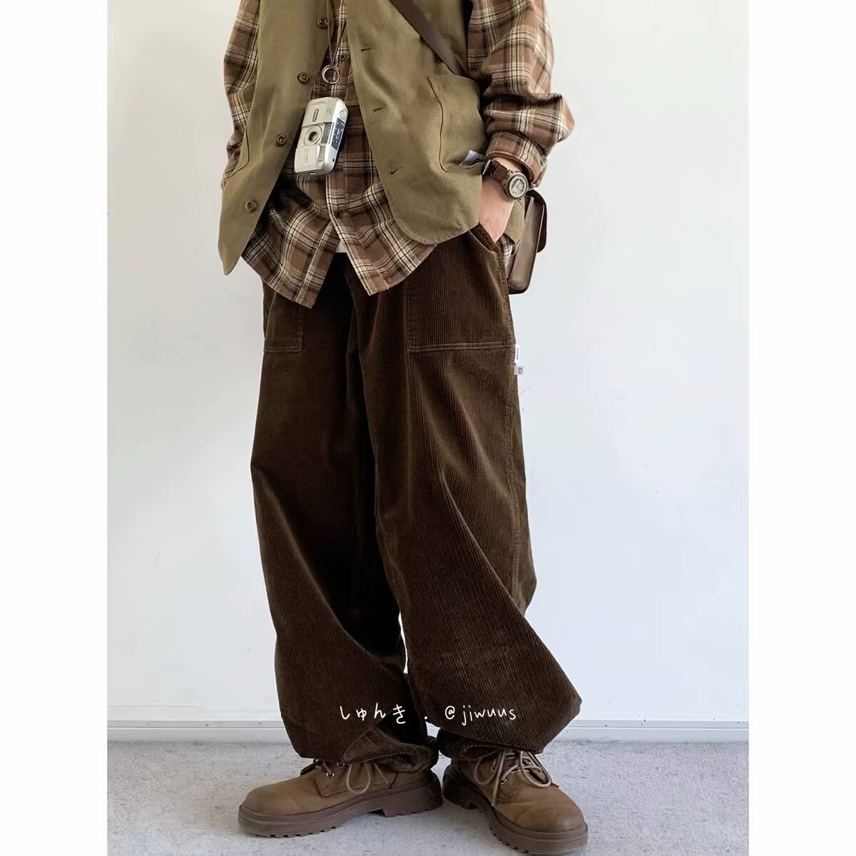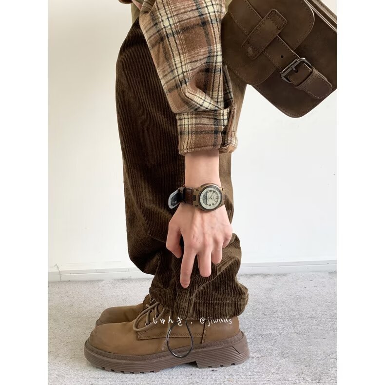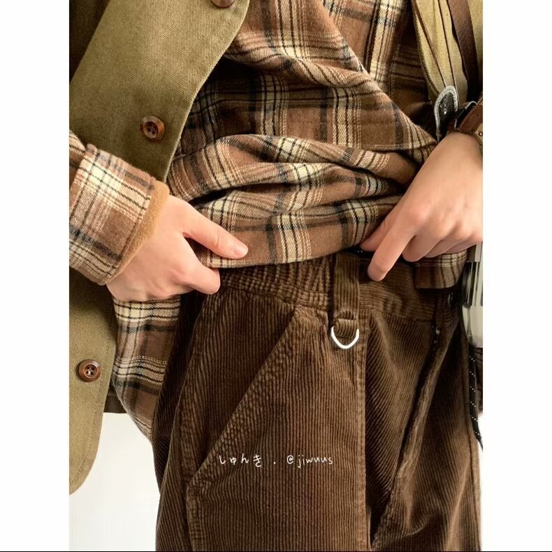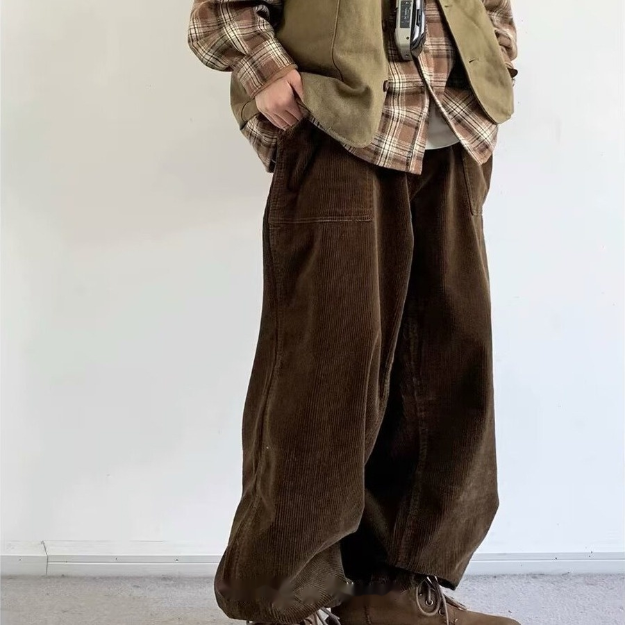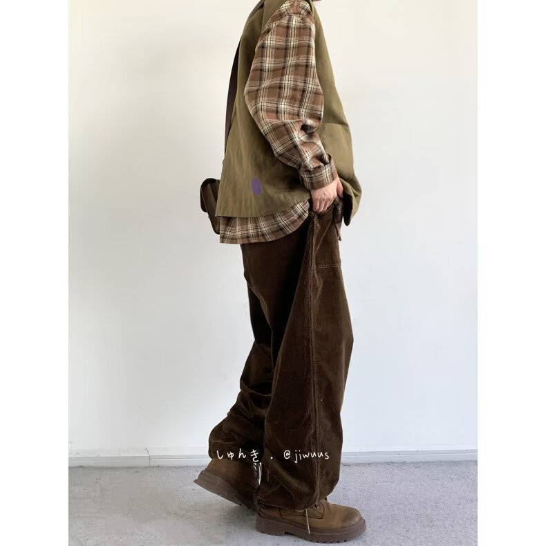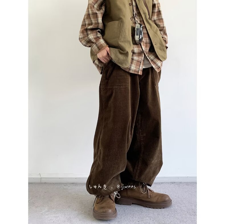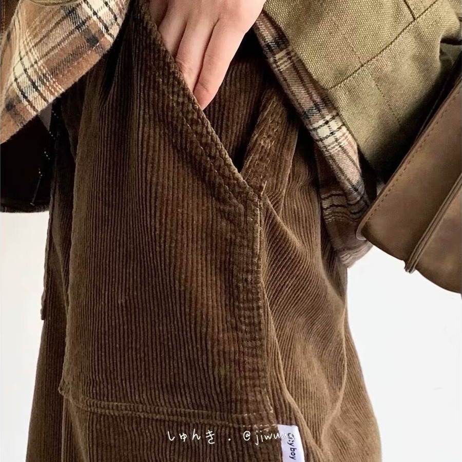 Product information: Color: black, dark brown Size: M,L,XL,XXL,XXXL Style: long straight-leg pants Fabric name: corduroy Main fabric composition: Polyester Fiber Style: Korean style Leg opening style: Straight