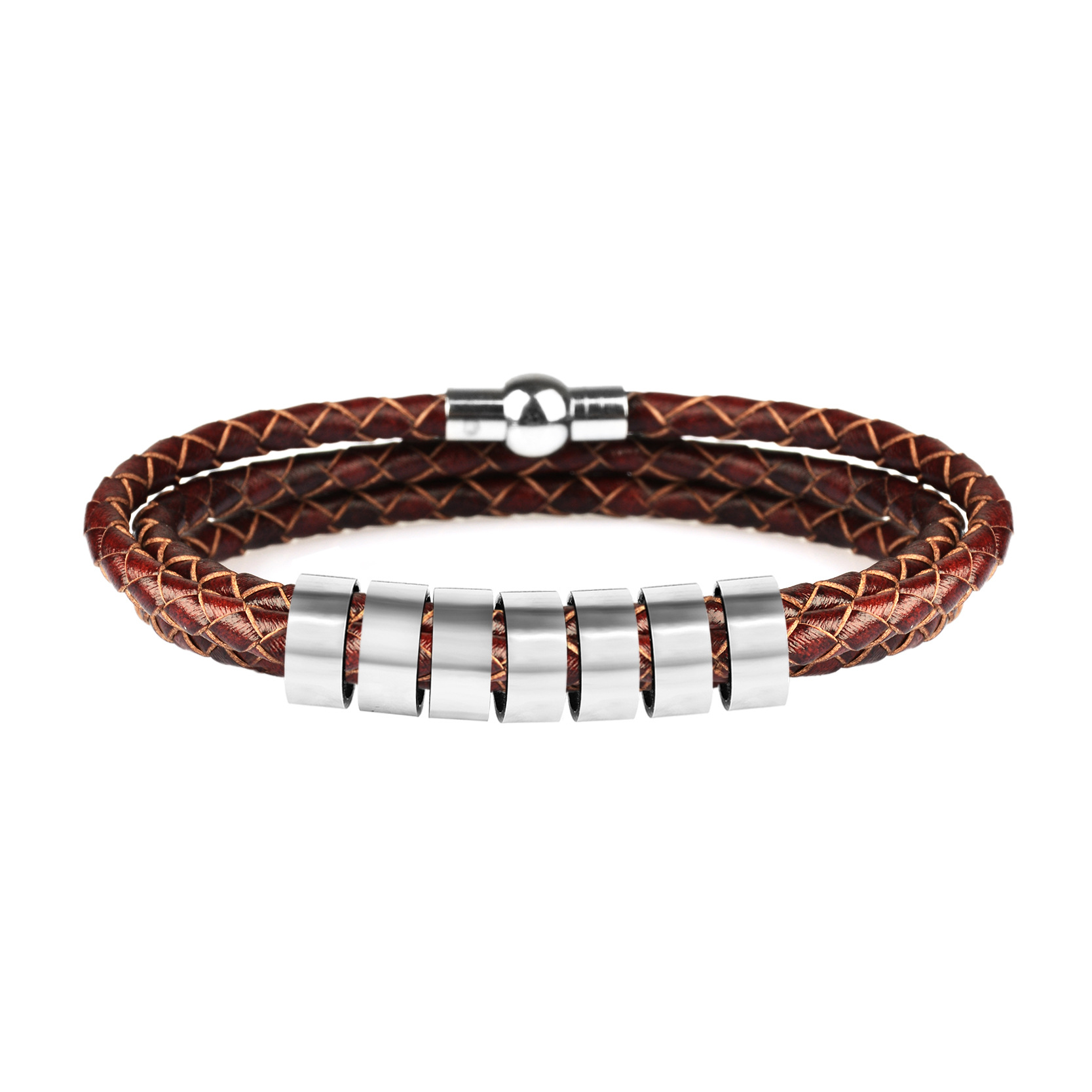 Material: stainless steelProcessing technology: manual weavingType: BraceletShape: Letters/Numbers/TextProduct specifications: bead height 5mm, diameter 12mm, bracelet length 62cm