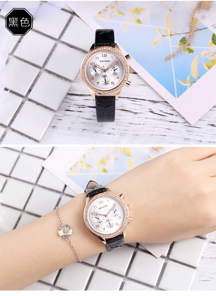 Style: fashionWaterproof performance: 30m life waterproofMovement type: quartzThickness: 8mmDial diameter: 36mmMirror material: mineral strengthened glass mirrorStrap material: imitation leatherDial shape: round