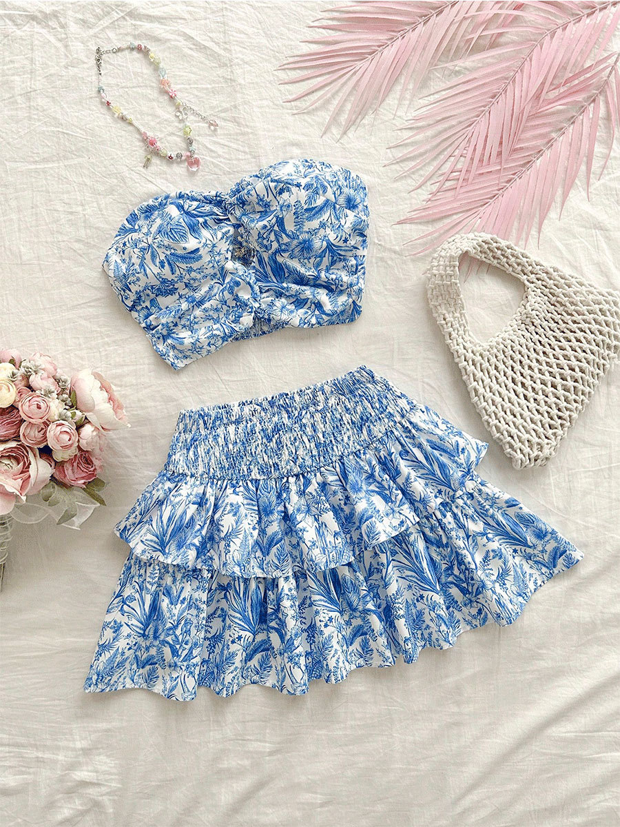 Product information: Color: blue Size: S,M,L,XL,XXL Skirt length: short skirt Popular elements: ruffles Fabric name: Polyester