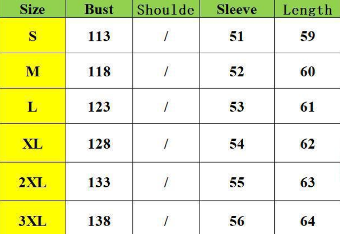 Size:S,M,L,XL,2XL,3XL unit:cm