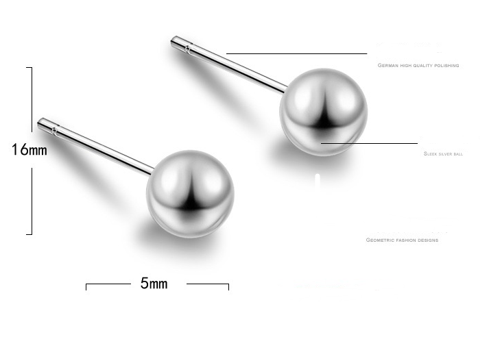 Material: SilverType : Stud EarringsStyle: Women'sModeling: GeometryColor: 4mm (about 0.6g), 5mm (about 0.8g), 6mm (about 1.2g)