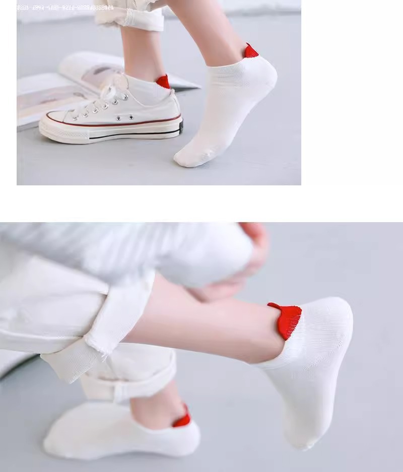 Product information: Pattern: solid color Color: white pink, white yellow, white & purple, white green, black red, white red Length of socks: short tube Main fabric composition: Polyester Fiber Style: Korean style