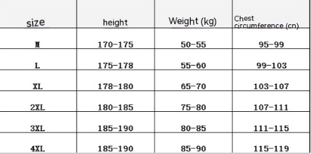 Size: M is suitable for 40.00 kg-50.00 kg, L is suitable for 50.00 kg-60.00 kg, XL is suitable for 60.00 kg-67.50 kg, 2XL is suitable for 67.50 kg-75.00 kg, 3XL is suitable for 75.00 kg-85.00 kg, 4XL is suitable for 85.00 kg-100.00 kg