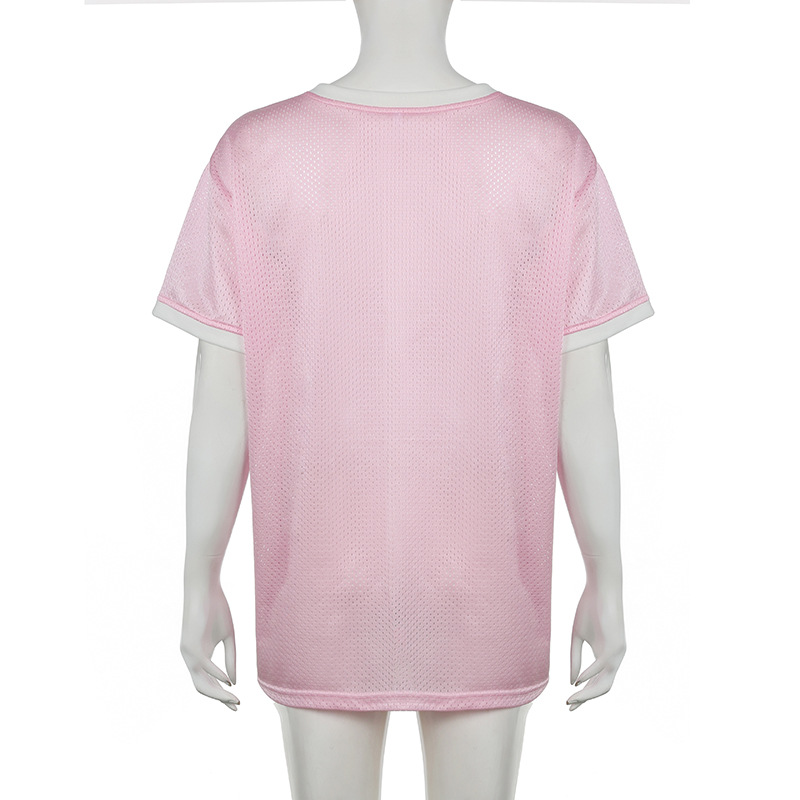Product information: Pattern: digital, contrast color Color: pink, blue Size: S,M,L Version: Loose Popular elements: contrast color Style: pullover Main fabric composition: Polyester (polyester fiber) Length: Short (40cm