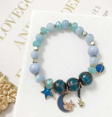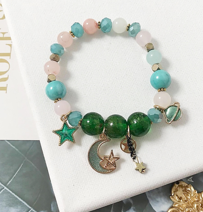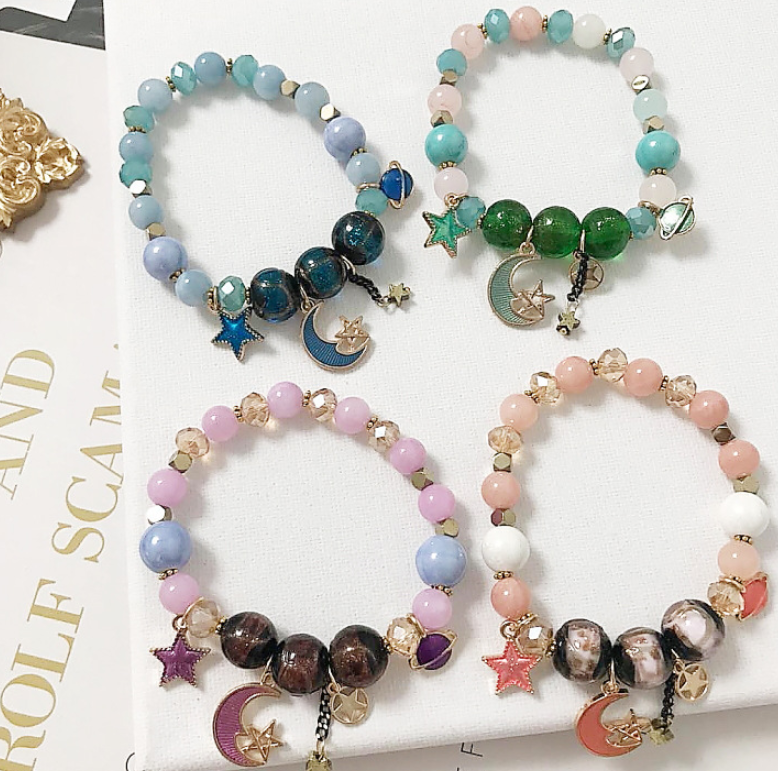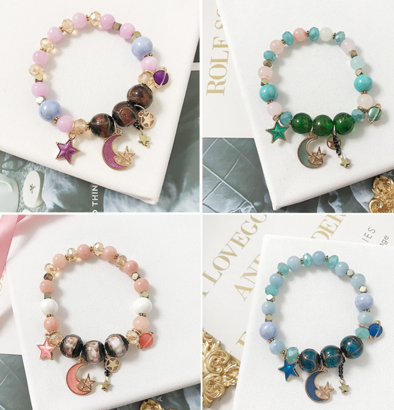 Bohemian creative starry bracelet Japanese handmade star moon glass beads crystal beaded jewelry accessories