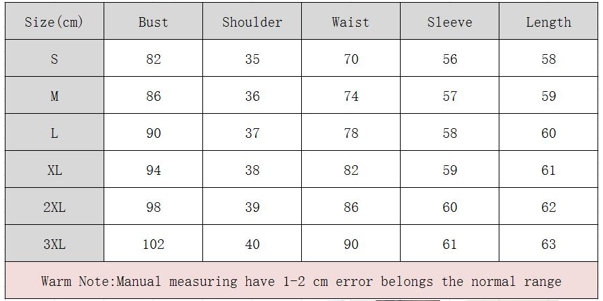 1. Asian sizes are 1 to 2 sizes smaller than European and American people. Choose the larger size if your size between two sizes. Please allow 2-3cm differences due to manual measurement.