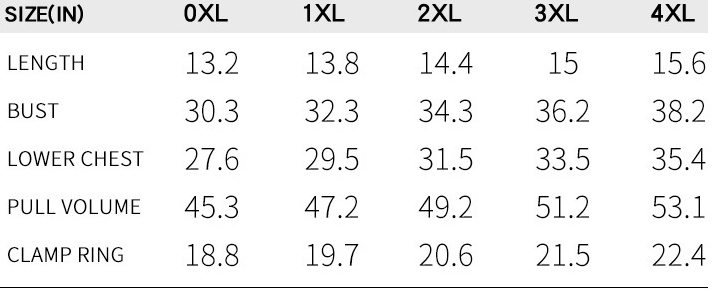 Size: 0XL (L), 1XL (XL), 2XL, 3XL, 4XL