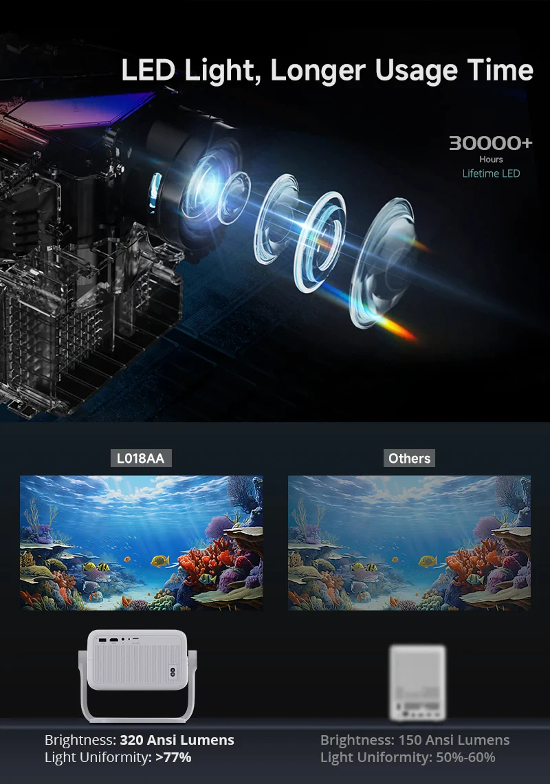 • السطوع: 250 لومينز (ANSI Lumens).
