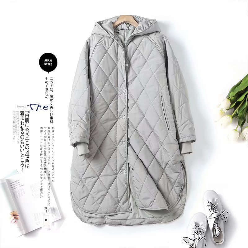 Color: 3548 bean gray hooded long padded jacket, 3548 black hooded padded jacket