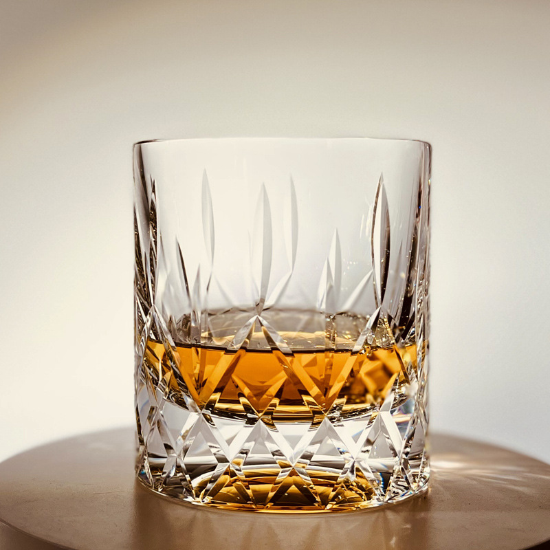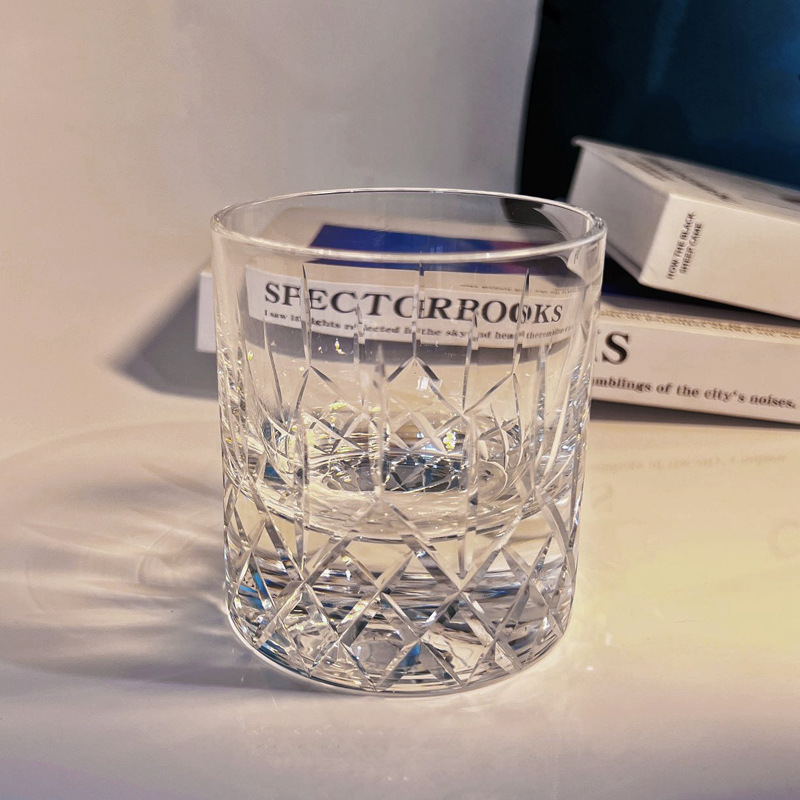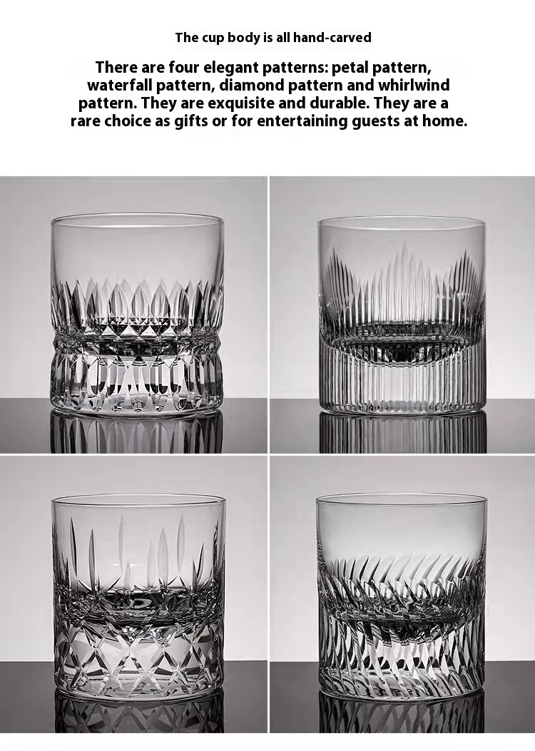Product information:Color: Waterfall grain wood boxed, Cyclone grain wood boxed, Diamond grain wood boxed, petal grain wood boxed Material: crystal glass Capacity: 201-300ml Size: 9 * 8cm