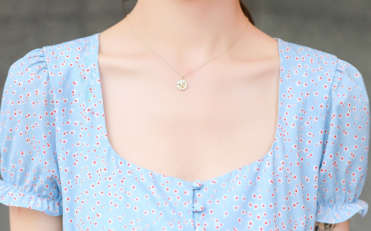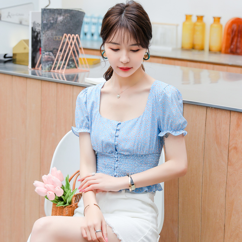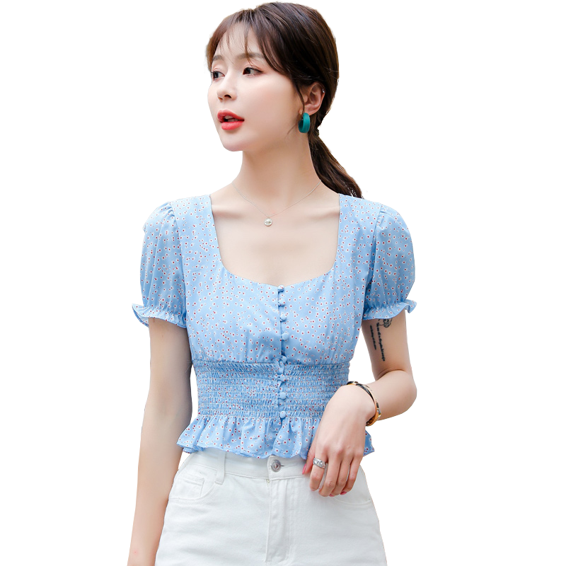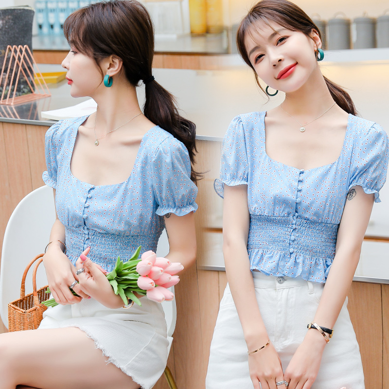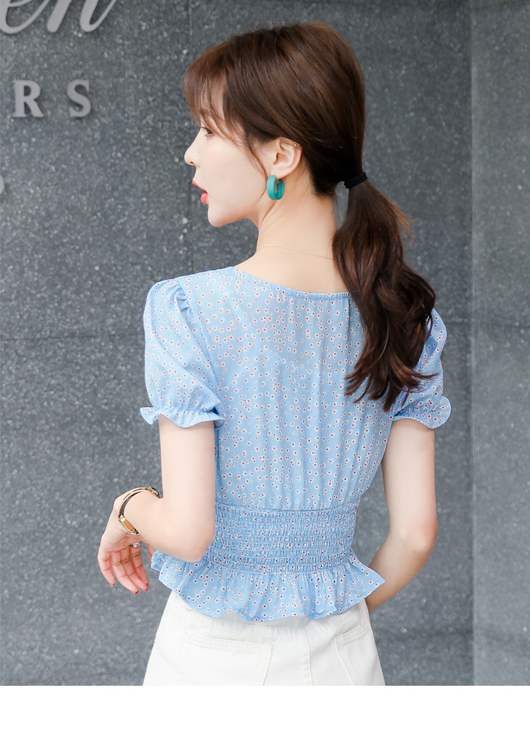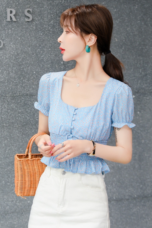 Square collar ruffled little daisy floral top