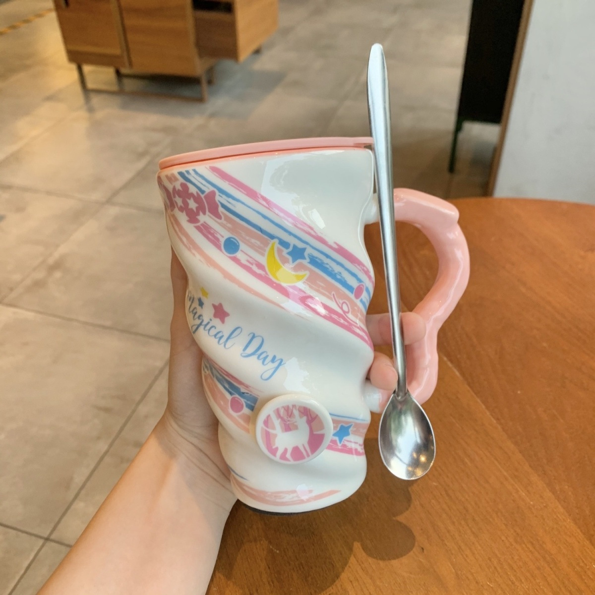 Cup material: CeramicSpoon material: stainless steel