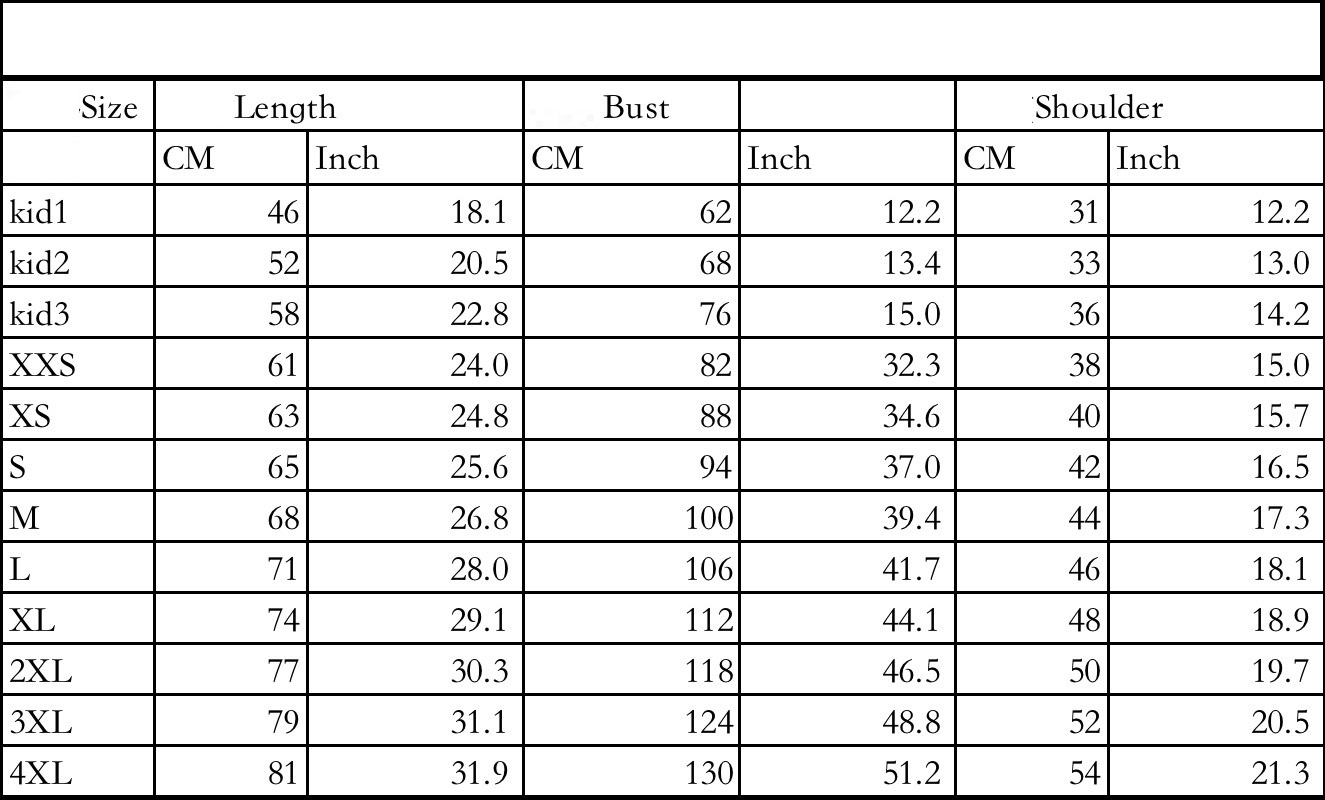 Size: XXS,XS,S,M,L,XL,2XL,3XL,4XL