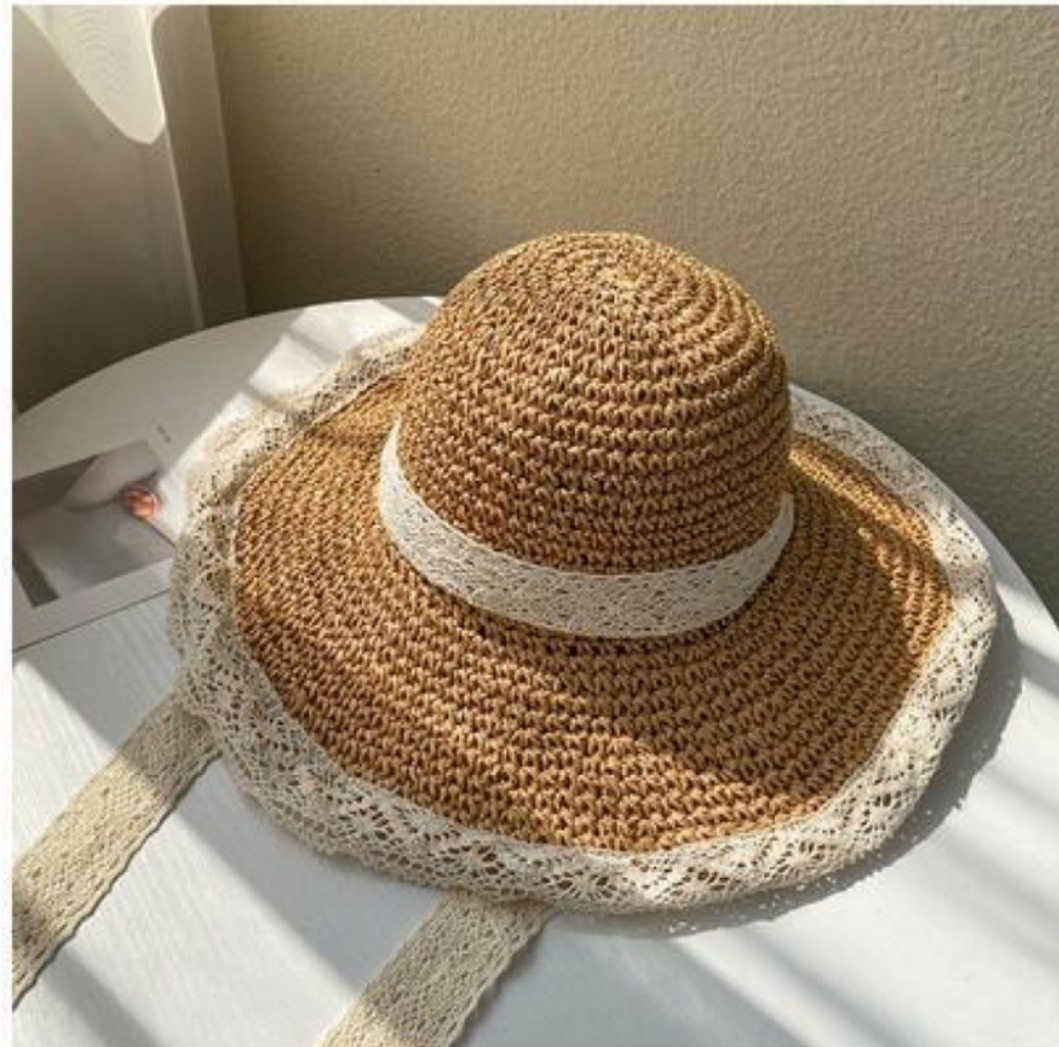 Applicable gender: femaleMaterial: StrawPopular elements: lacePattern: MonochromeHat style: domeHat brim style: big brim