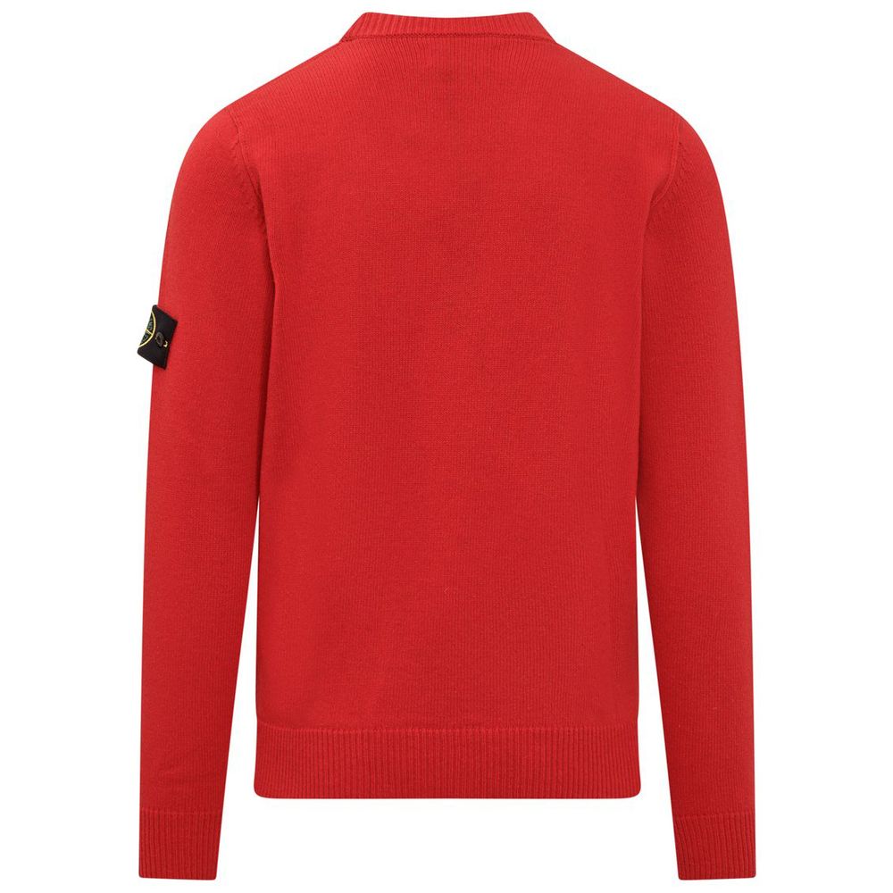 Stone Island wool crew-neck sweater with ribbed details, ribbed collar, hem and cuffs, franked logo patch on left arm
