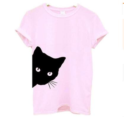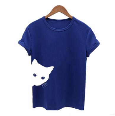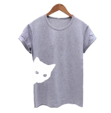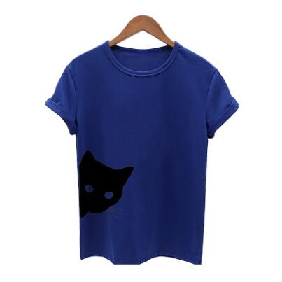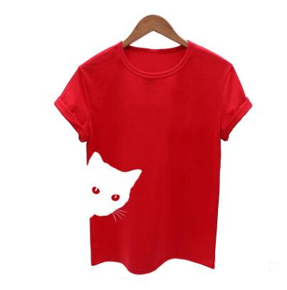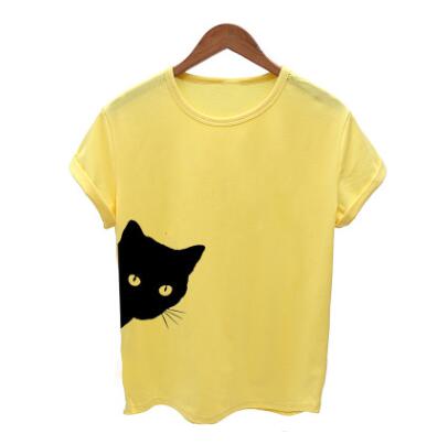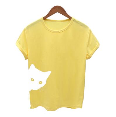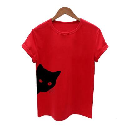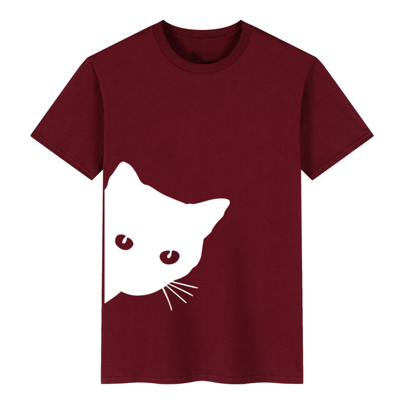 Cat pattern print round neck slim short-sleeved T-shirt