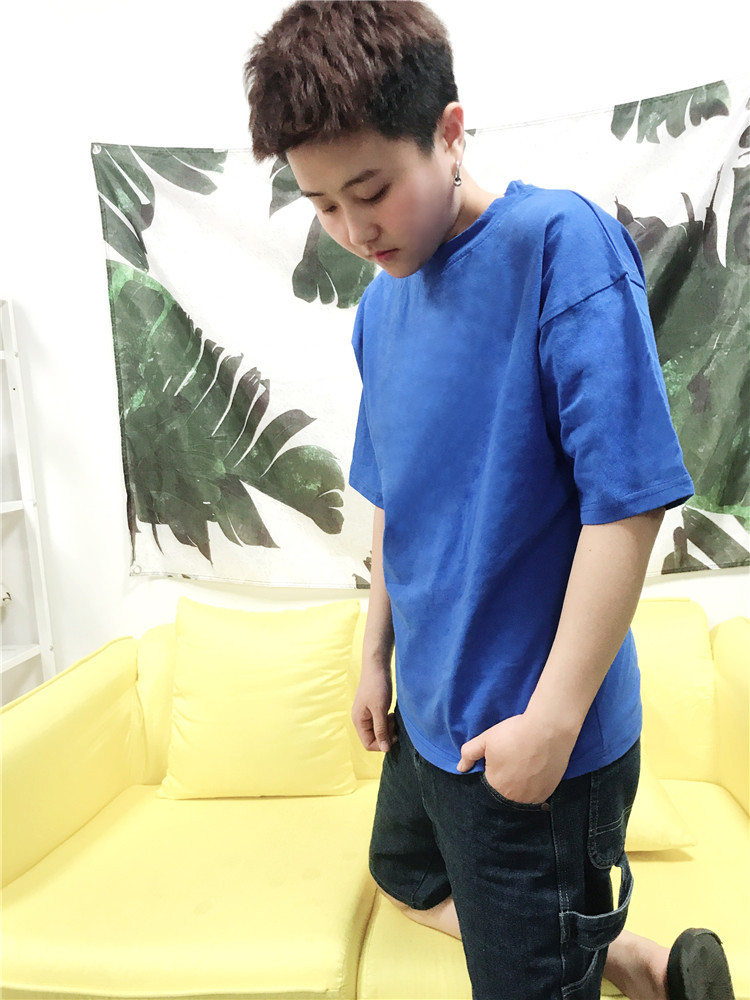 Color: white [short-sleeved solid color and loose], black [short-sleeved solid color and loose], blue [short-sleeved solid color and loose], yellow [short-sleeved solid color and loose]