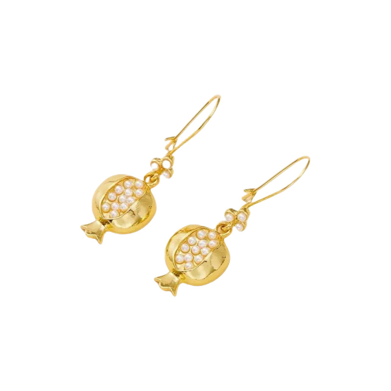 Product information:Treatment Process: Electroplating Color: white, red Applicable population: Female Material: Alloy Shape: fruit Popular elements: Pomegranate