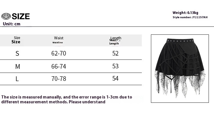 Color: Black, short skirt, cobweb skirt, pompadour skirt