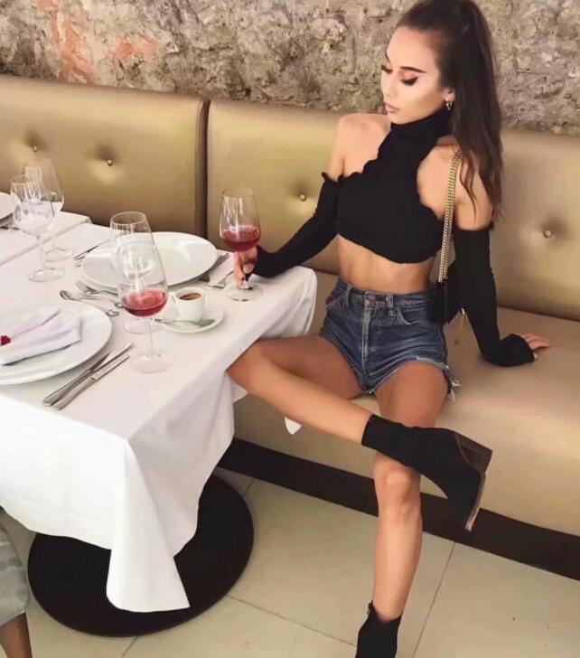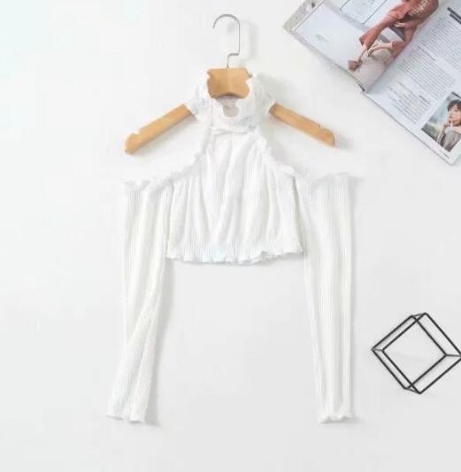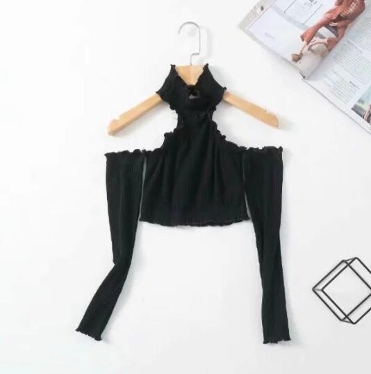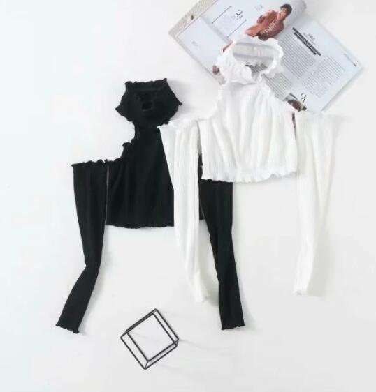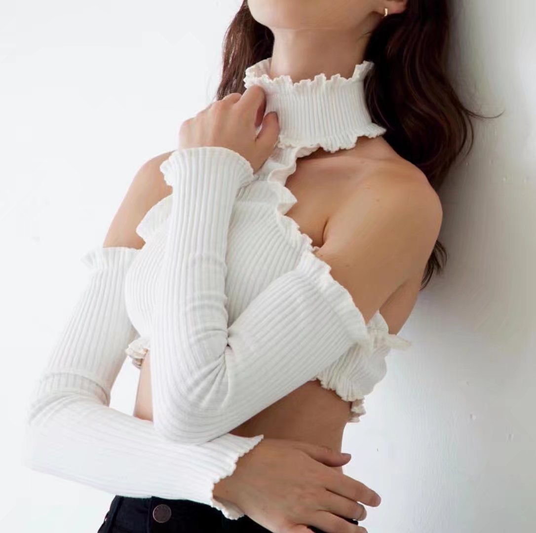 European And American Style Fashionable Wooden Ear Long Sleeve Hanging Neck High Collar T-shirt