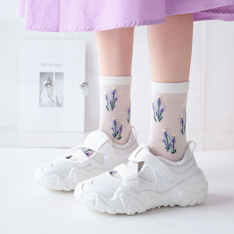 Color: purple large bunch of flowers, purple vertical stripes, purple vertical small bouquets, purple houndstooth, purple embroidered flowers
