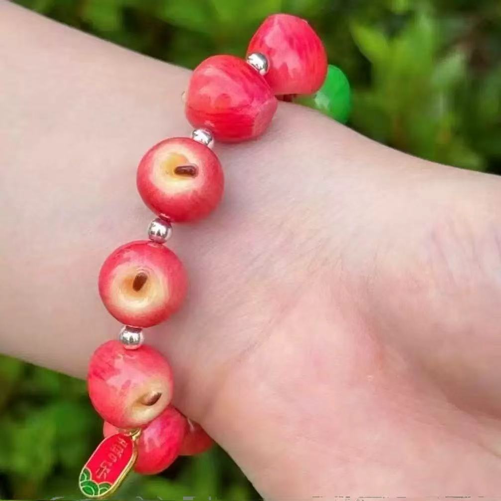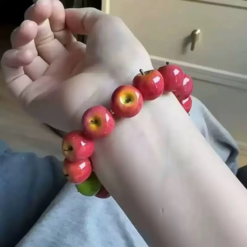 Product information:Color: red apple bracelet, Green Apple braceletStyle: UnisexMaterial: Plastic/resinSize: 18mmShape: roundPopular elements: AppleStyle: European and American