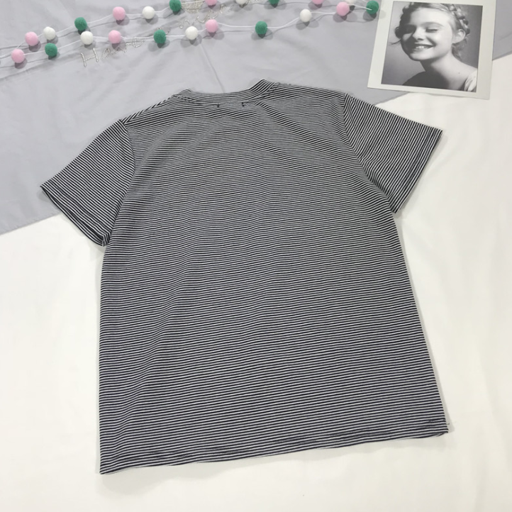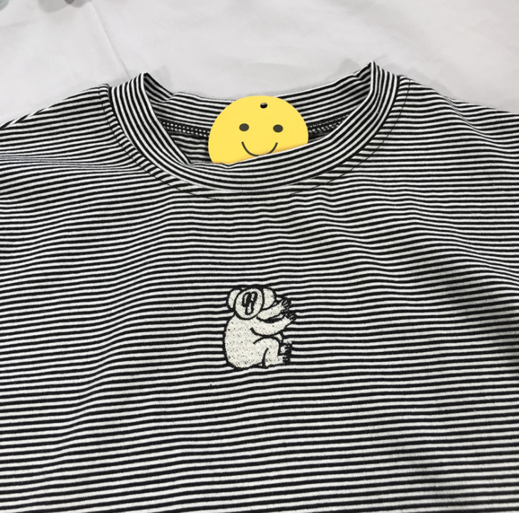 Original Design Sommer frauen Schwarz Gestreiften Turtlneck T-shirt Koala Stickerei Kurzarm Femme T-shirt Top T-shirt