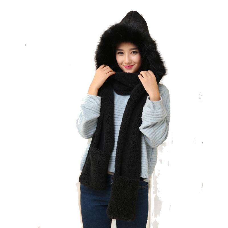 [Wearing method]: The long side can be used as a scarf around the neck. The hat can be matched with clothes or worn on the head. In addition, the hand can also be inserted in the glove pocket, which is warm and fashionable.