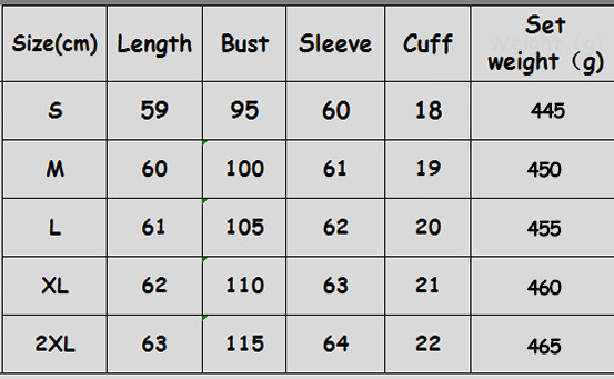 Size: S, M, L, XL, XXL Unit: cm