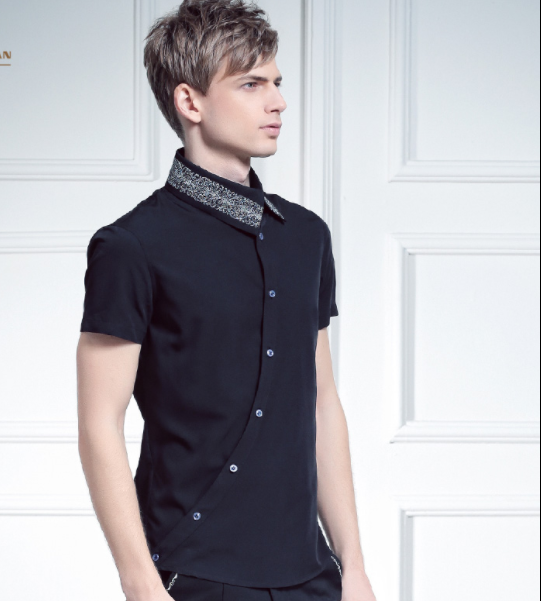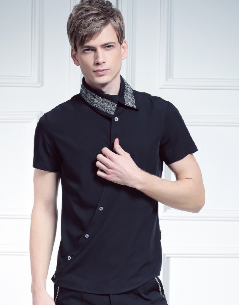 Irregular Oblique Collar Embroidery Shirt